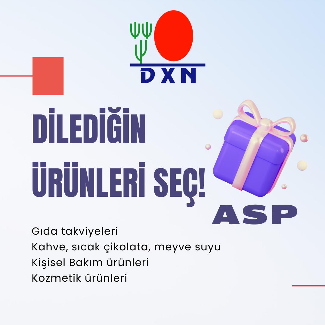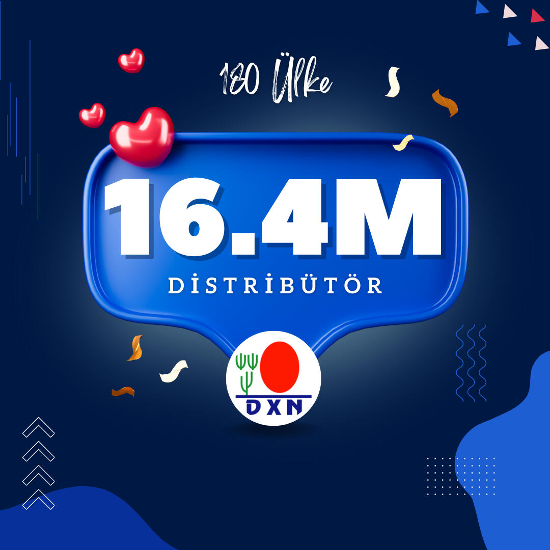 16,4 Milyondan fazla distribütör 30 Milyondan fazla mutlu müşteri. Katkısız, konsantre süper doğal gıdalar, sağlıklı kozmetik ve kişisel bakım ürünleri, ev&yaşam alanında fark yaratan ürünlerle insanların hayatlarına sağlık ve varlık anlamında dokunan bir firmadır DXN.